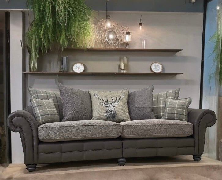 The Darwin Collection combines contrasting fabrics and textures to create a sofa with a classic country contemporary feel. Luxurious quilting detail on the front of the sofas and chairs with classic scroll arms and turned legs.