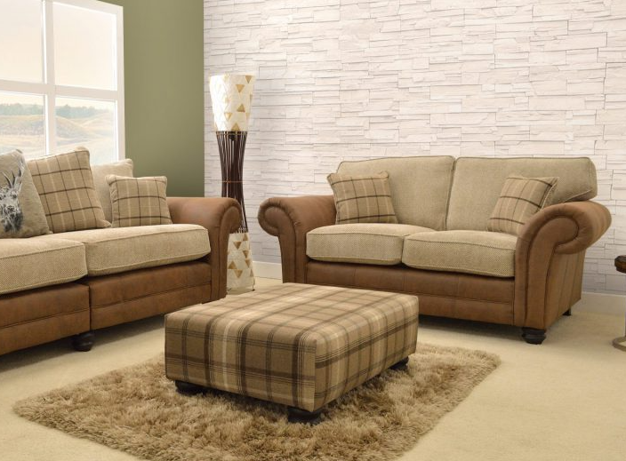 The Darwin Collection combines contrasting fabrics and textures to create a sofa with a classic country contemporary feel. Luxurious quilting detail on the front of the sofas and chairs with classic scroll arms and turned legs.